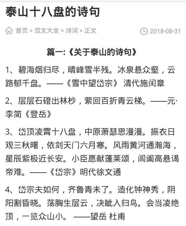 从秦始皇登泰山到如今,留下许多佳作。如: